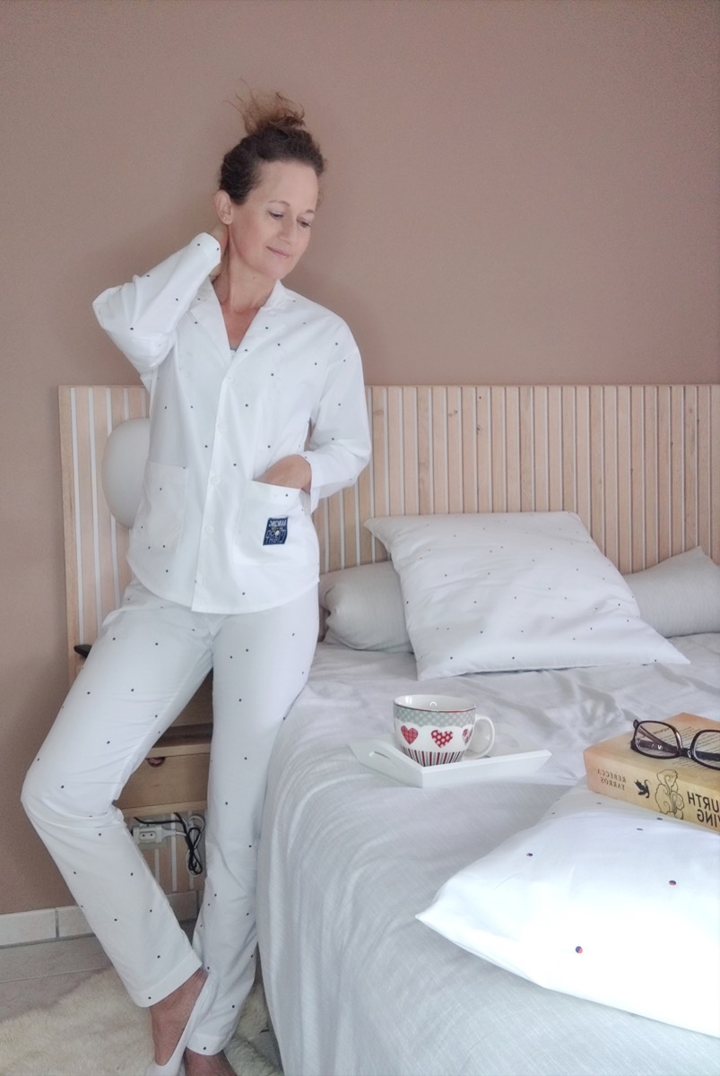 Pyjaka Mama est un pyjama pour femme confortable. Il se compose d'une veste avec 2 poches plaquées et d'un pantalon avec une ceinture avec élastique. Disponible du 36 au 52, format A4 et A0 avec ou sans marges de couture.